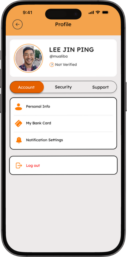 While reviewing the profile screen, I noticed a few things that could affect both usability and accessibility. First, the black text on the orange background, like the user name and verification status, didn’t have enough contrast. Many users find this hard to read as it doesn’t follow WCAG guidelines for accessible color contrast. To improve this, I placed those texts inside white cards, which makes them stand out more and easier to read.